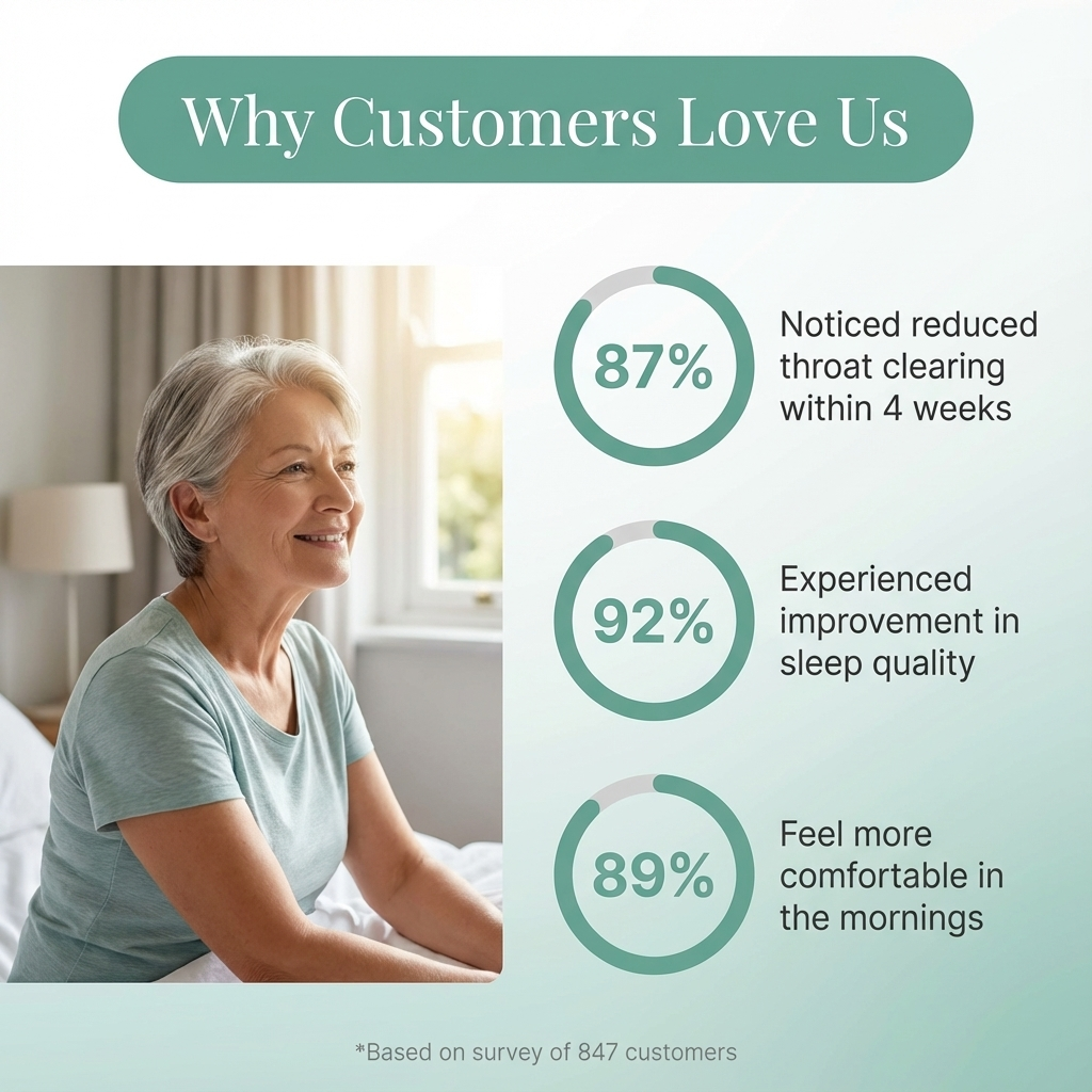 • “I’ve dealt with stubborn mucus for years and nothing ever really cleared it. Within a week of taking these drops, my chest felt lighter and my mornings were so much easier. Finally, I can breathe clearly without constant coughing.”